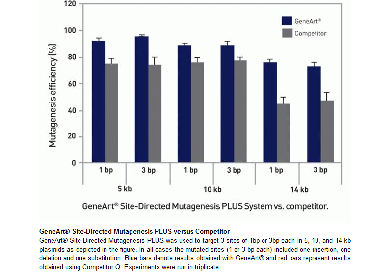 • Powerful—make substitutions, deletions, or insertions of up to 3 nucleotides in 1, 2, or 3 separate sites in DNA plasmids of up to 14 kb