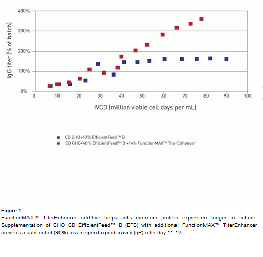 • If you have a drop off in specific productivity late in a high density fed-batch culture, FunctionMAX™ TiterEnhancer may be able to improve your titers