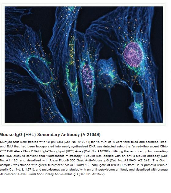 Anti-Mouse secondary antibodies are affinity-purified antibodies with well-characterized specificity for mouse immunoglobulins and are useful in the detection, sorting or purification of its specified target. Secondary antibodies offer increased versatility enabling users to use many detection systems (e.g. HRP, AP, fluorescence). They can also provide greater sensitivity through signal amplification as multiple secondary antibodies can bind to a single primary antibody. Most commonly, secondary antibodies are generated by immunizing the host animal with a pooled population of immunoglobulins from the target species and can be further purified and modified (i.e. immunoaffinity chromatography, antibody fragmentation, label conjugation, etc.) to generate highly specific reagents.