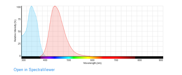 The Alexa Fluor 350 donkey anti - mouse IgG is labeled with our bright, photostable, blue-fluorescent Alexa Fluor 350 dye and is prepared from affinity-purified antibodies that react with IgG heavy chains and all classes of immunoglobulin light chains from mouse. The donkey anti - mouse IgG antibodies show minimum cross-reactivity to bovine, chicken, goat, guinea pig, hamster, horse, human, rabbit, rat, and sheep serum proteins.
