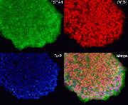 Powered by the superior performance of bright, photostable Alexa Fluor® dyes, this kit enables the acquisition of beautiful multiplexed images of PSC marker expression using commonly available blue, green, and orange/red filter sets.