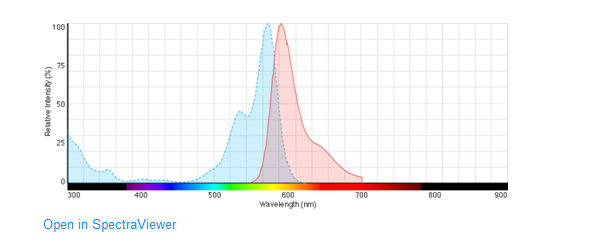 Our Rhodamine Red™-X conjugate of NeutrAvidin® biotin-binding protein – a form of avidin that has been processed to remove carbohydrate and to lower its isoelectric point – can substantially decrease background due to nonspecific binding. The method used to deglycosylate the avidin retains its specific binding. This bright, red-fluorescent reagent (absorption/emission maxima ~570/590 nm) is ideal for detecting biotinylated targets in fluorescence microscopy applications.