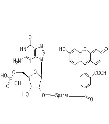 GMP-Fluorescein conjugate calibrator is desigend to use with our green fluorescent FAM-cGMP PDE V substrate, a cGMP derivative that is a specific substrate for phosphodiesterase (PDE) V (#Cat: 13604). This GMP-Fluorescein conjugate calibrator is the hydrolyzed product of FAM-cGMP PDE V substrate (#Cat: 13604) by PDE V. It is used to calibrate the hydrolysis rate of FAM-cGMP PDE V substrate (#Cat: 13604) by PDE V.