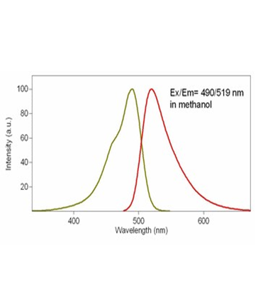 Acridine orange is a nucleic acid selective fluorescent cationic dye useful for cell cycle determination. It is cell-permeable, and interacts with DNA and RNA by intercalation or electrostatic attractions. When bound to DNA, it is very similar spectrally to fluorescein, with an excitation maximum at 502 nm and an emission maximum at 525 nm (green). When it associates with RNA, the excitation maximum shifts to 460 nm (blue) and the emission maximum shifts to 650 nm (red). The dye is often used in epifluorescence microscopy.