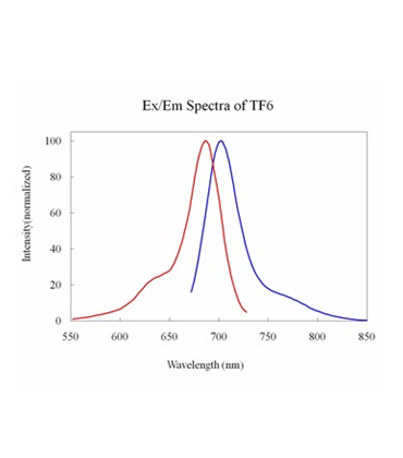 Tide Fluor™6 (TF6) family has the spectral properties similar to those of Cy5.5, IRDye 700 and Alexa Fluor 680. Their fluorescence is pH-independent from pH 3 to 11. These characteristics make this new dye family more robust to pH-sensitive assays. In some cases TF6-labeled peptides and nucleotides exhibit stronger fluorescence and higher photostability than the ones labeled with Cy5.5, IRDye 700 and Alexa Fluor 680. In pairing with our Tide Quencher™ 6 (TQ6), a variety of FRET peptides and nucleotides can be developed for detecting proteases and molecular beacons with enhanced sensitivity and stability.