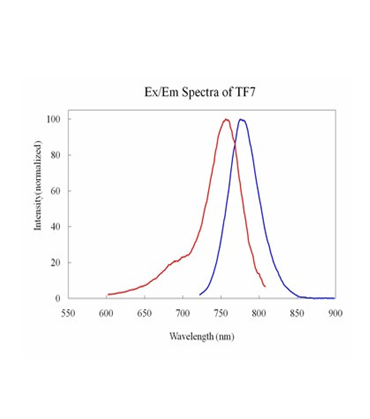 Tide Fluor™7 (TF7) family has the spectral properties similar to those of Cy7, IRDye 800 and Alexa Fluor 750. Their fluorescence is pH-independent from pH 3 to 11. These characteristics make this new dye family more robust to pH-sensitive assays. In some cases TF7-labeled peptides and nucleotides exhibit stronger fluorescence and higher photostability than the ones labeled with Cy7, IRDye 800 and Alexa Fluor 750. In pairing with our Tide Quencher™ 7 (TQ7), a variety of FRET peptides and nucleotides can be developed for detecting proteases and molecular beacons with enhanced sensitivity and stability.