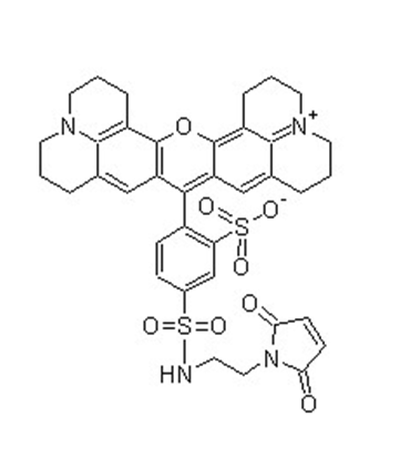 TR C2马来酰亚胺是标记含硫羟基生物分子(例如多肽、蛋白质和硫羟化修饰的寡聚核苷酸)非常理想的硫羟化反应性荧光试剂。它选择性地与含硫羟基团的多肽、蛋白质、和其它的生物分子(如硫羟化衍生的有机小分子)反应。它与TR偶联物具有相同的光谱特性,因此所有TR共轭体系都能用TR C2马来酰亚胺实现。德州红C2马来酰亚胺产品的光谱学相关参数为Ex=588nm / Em=601nm;其对应分子量大小为728.83MW。