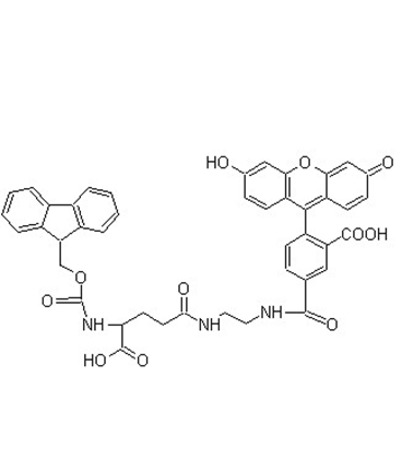 EDANS按序标记的谷氨酸的一个基础结构单元。5-FAM标记的Glu谷氨酸产品的光谱学相关参数为Ex=494nm / Em=521nm;其对应分子量大小为769.75MW。