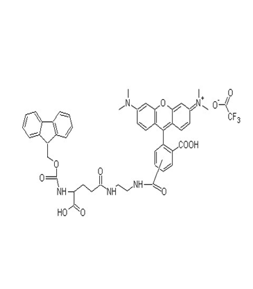 EDANS按序标记的谷氨酸的一个基础结构单元。5/6-TAMRA标记的Glu谷氨酸产品的光谱学相关参数为Ex=544nm / Em=572nm;其对应分子量大小为937.91MW。