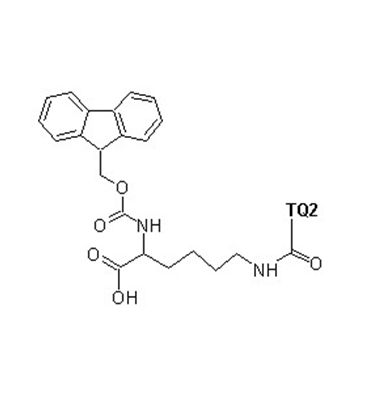 FMOC- Lys(TQ2)-OH是TQ2按序标记赖氨酸的一个基础部分。TQ2是最好的荧光淬灭剂,与荧光素或者其他荧光染料(与荧光素具有相似的光谱特性,例如染料Bodipy FL)一起制备FRET探针。它也可以和罗丹明6G,6-TET和6-JOE衍生物一起使用。TQ2标记的Lys赖氨酸产品的光谱学相关参数为Ex=515nm;其对应分子量大小为732.89MW。