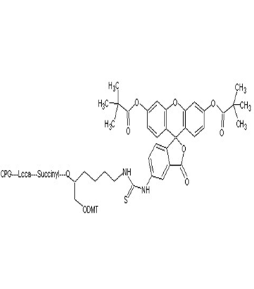 有许多方法标记寡聚核苷酸,使其带有荧光。依据其光谱需求,标记的选择多元化。5’荧光-CE-亚磷酰胺,来源于6-羧基荧光素单一异构体。5’-六氯荧光素氨基磷酸酯(HEX)和5‘-四氯荧光素氨基磷酸酯。3’-荧光素 CPG产品的光谱学相关参数为Ex=494nm。