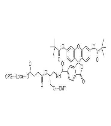 有许多方法标记寡聚核苷酸,使其带有荧光。依据其光谱需求,标记的选择多元化。5’荧光-CE-亚磷酰胺,来源于6-羧基荧光素单一异构体。5’-六氯荧光素氨基磷酸酯(HEX)和5‘-四氯荧光素氨基磷酸酯。3’-(6-荧光素) CPG产品的光谱学相关参数为Ex=494nm / Em=522nm。