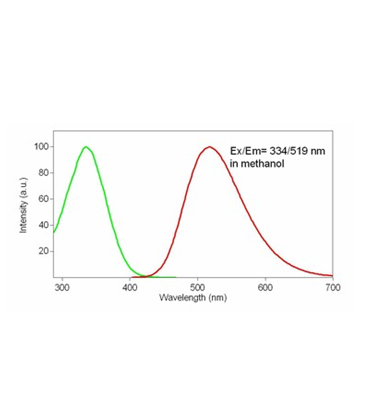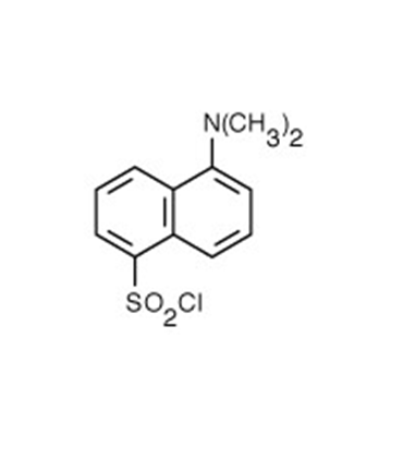 丹磺酰氯直到与胺反应才发荧光,这导致Dansyl 染料产生环境敏感型荧光,发射光最大波长与最大斯托克位移相关。这种对环境敏感的荧光特性,使Dansyl 染料成为生物物理研究的一个非常重要的工具。它们在药物和配体类(期待能与蛋白质、细胞膜或者其它生物受体的疏水位点结合)研究发挥着特别重要的作用。Dansyl 蛋白偶联物具有100纳秒的光寿命(半衰期)。丹磺酰氯产品的光谱学相关参数为Ex=372nm;其对应分子量大小为269.75MW。