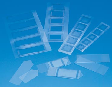 Thermo Scientific Gene Frames have adhesives on either side of the frame which are of differing strengths; the side which adheres to the glass has an easy release adhesive whereas the reverse, which sticks to the coverslip, forms a stronger bond. This means that when the coverslip is removed, due to the disparity in the strengths of the different adhesives, the frame is removed simultaneously with no sticky residue being left behind on the slide.
