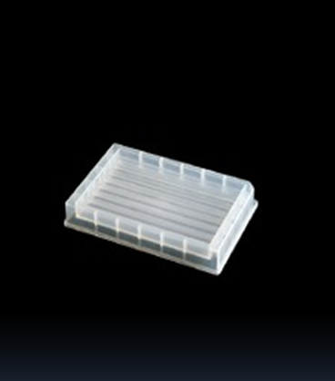 Multi-well reservoir with 8-channel configurations. Low profile. Maximum volume per well is 4.0 mL and maximum volume is 32 mL.