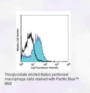 ** Pacific Blue™ is a registered trademark of Molecular Probes, Inc. Pacific Blue™ dye antibody conjugates are sold under license from Molecular Probes, Inc. for research use only, except for use in combination with microarrays and high content screening, and are covered by pending and issued patents.