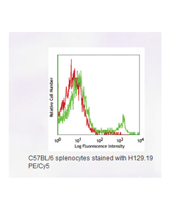 Description:CD4 is a 55 kD protein, also known as L3T4 or T4. It is a member of the Ig superfamily, primarily expressed on most thymocytes, a subset of T cells, and weakly on macrophages and dendritic cells. It acts as a coreceptor with the TCR during T cell activation and thymic differentiation by binding MHC class II and associating with the protein tyrosin kinase, lck. The H129.19 antibody is able to block CD4 mediated cell adhesion and T cell activation. It is also useful for in vivo and in vitro depletion of CD4+ T cells. H129.19 antibody blocks binding of the anti-mouse CD4 mAbs GK1.5 and RM4-5, but not RM4-4 antibody. H129.19 antibody inhibits various responses of T helper cells to antigenic or mitogenic stimuli.