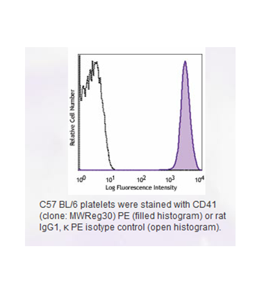 CD41, also known as integrin α2b and GPIIb, is a transmembrane glycoprotein that is expressed by platelets and megakaryocytes. It was reported that CD41 is also expressed on hematopoietic progenitors. CD41 associates with CD61 (integrin β3) to form complexes that interact with fibrinogen, fibronectin, von Willebrand factor, and thrombin. CD41 is required for platelet adhesion and aggregation. Defect of CD41 leads to disorders of coagulation