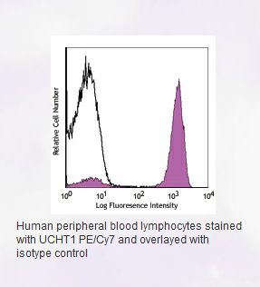 Each lot of this antibody is quality control tested by immunofluorescent staining with flow cytometric analysis. Test size products are transitioning from 20 µl to 5 µl per test. Please check your vial or your CoA to find the suggested use of this reagent per million cells in 100 µl staining volume or per 100 µl of whole blood. It is recommended that the reagent be titrated for optimal performance for each application.