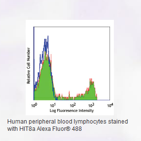 Each lot of this antibody is quality control tested by immunofluorescent staining with flow cytometric analysis. For immunofluorescent staining, the suggested use of this reagent is 5 µl per million cells or 5 µl per 100 µl of whole blood. It is recommended that the reagent be titrated for optimal performance for each application.