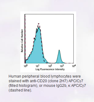 Each lot of this antibody is quality control tested by immunofluorescent staining with flow cytometric analysis. Test size products are transitioning from 20 µl to 5 µl per test. Please check your vial or your CoA to find the suggested use of this reagent per million cells in 100 µl staining volume or per 100 µl of whole blood. It is recommended that the reagent be titrated for optimal performance for each application.