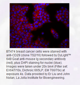 Each lot of this antibody is quality control tested by immunofluorescent staining with flow cytometric analysis. For immunofluorescent staining, the suggested use of this reagent is ≤2.0 µg per million cells in 100 µl volume or 100 µl of whole blood. It is recommended that the reagent be titrated for optimal performance for each application.