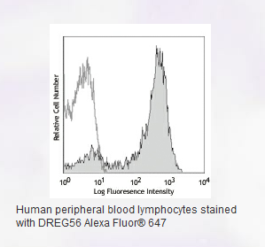 Each lot of this antibody is quality control tested by immunofluorescent staining with flow cytometric analysis. For immunofluorescent staining, the suggested use of this reagent is 5 µl per million cells or 5 µl per 100 µl of whole blood. It is recommended that the reagent be titrated for optimal performance for each application.