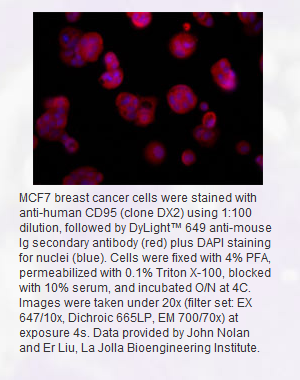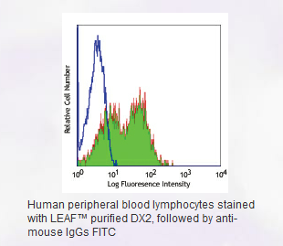 Each lot of this antibody is quality control tested by immunofluorescent staining with flow cytometric analysis. For immunofluorescent staining, the suggested use of this reagent is ≤ 2.0 µg per 106 cells in 100 µl volume or 100 µl of whole blood. It is recommended that the reagent be titrated for optimal performance for each application.