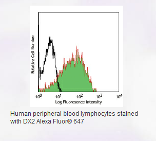 Each lot of this antibody is quality control tested by immunofluorescent staining with flow cytometric analysis. For immunofluorescent staining, the suggested use of this reagent is 5 µl per million cells or 5 µl per 100 µl of whole blood. It is recommended that the reagent be titrated for optimal performance for each application.