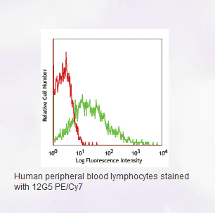 Each lot of this antibody is quality control tested by immunofluorescent staining with flow cytometric analysis. Test size products are transitioning from 20 µl to 5 µl per test. Please check your vial or your CoA to find the suggested use of this reagent per million cells in 100 µl staining volume or per 100 µl of whole blood. It is recommended that the reagent be titrated for optimal performance for each application.