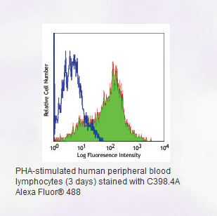 Each lot of this antibody is quality control tested by immunofluorescent staining with flow cytometric analysis. For immunofluorescent staining, the suggested use of this reagent is ≤0.5 µg per 106 cells in 100 µl volume. It is recommended that reagents be titrated for optimal performance in the particular application.