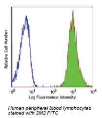 β2-microglobulin (β2M) is a 12 kD nonpolymorphic Ig like protein. It is a non-membrane-anchored glycoprotein and is noncovalently associated with 39-44 kD polymorphic heavy chains of MHC class I molecules to form HLA class I antigen complex. In association with HLA class I, β2M is expressed on all leukocytes, platelets, endothelial cells, and epithelial cells. β2M plays an essential role both in governing MHC class I molecules stability and in promoting antigen binding and presenting the antigen to CD3/TCR complex of CD8+ T cells.