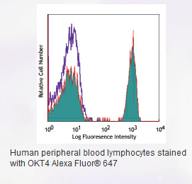 Each lot of this antibody is quality control tested by immunofluorescent staining with flow cytometric analysis. For immunofluorescent staining, the suggested use of this reagent is 5 µl per million cells or 5 µl per 100 µl of whole blood. It is recommended that the reagent be titrated for optimal performance for each application.