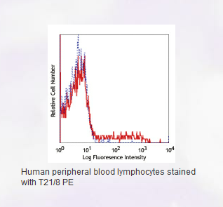 Each lot of this antibody is quality control tested by immunofluorescent staining with flow cytometric analysis. Test size products are transitioning from 20 µl to 5 µl per test. Please check your vial or your CoA to find the suggested use of this reagent per million cells in 100 µl staining volume or per 100 µl of whole blood. It is recommended that the reagent be titrated for optimal performance for each application.