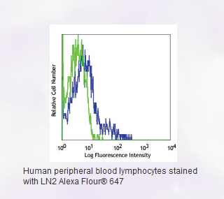 Each lot of this antibody is quality control tested by immunofluorescent staining with flow cytometric analysis. For immunofluorescent staining, the suggested use of this reagent is 5 µl per million cells or 5 µl per 100 µl of whole blood. It is recommended that the reagent be titrated for optimal performance for each application.