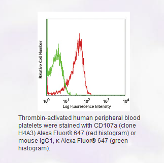 Each lot of this antibody is quality control tested by immunofluorescent staining with flow cytometric analysis. For immunofluorescent staining, the suggested use of this reagent is 5 µl per million cells or 5 µl per 100 µl of whole blood. It is recommended that the reagent be titrated for optimal performance for each application.