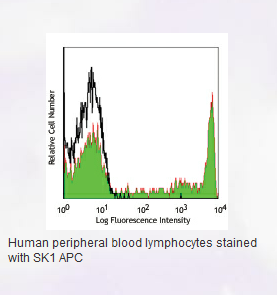 Each lot of this antibody is quality control tested by immunofluorescent staining with flow cytometric analysis. Test size products are transitioning from 20 µl to 5 µl per test. Please check your vial or your CoA to find the suggested use of this reagent per million cells in 100 µl staining volume or per 100 µl of whole blood. It is recommended that the reagent be titrated for optimal performance for each application.