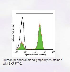 Each lot of this antibody is quality control tested by immunofluorescent staining with flow cytometric analysis. Test size products are transitioning from 20 µl to 5 µl per test. Please check your vial or your CoA to find the suggested use of this reagent per million cells in 100 µl staining volume or per 100 µl of whole blood. It is recommended that the reagent be titrated for optimal performance for each application.