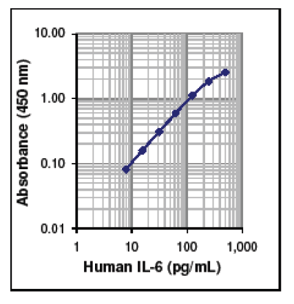 BioLegend’s ELISA MAX™ Standard Sets contain the capture and detection antibodies, recombinant protein standard, and Avidin-HRP required for the accurate quantification of natural and recombinant human IL-6. These sets are cost-effective and designed for experienced ELISA users. Optimization of reagent concentrations and assay conditions may be required.