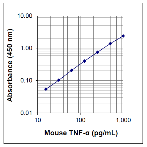 The BioLegend LEGEND MAX™ Mouse TNF-α ELISA Kit is a Sandwich Enzyme-Linked Immunosorbent Assay (ELISA) with a 96-well strip plate that is pre-coated with a capture antibody. This kit is specifically designed for the accurate quantitation of mouse TNF-α from cell culture supernatant, serum, plasma, and other biological fluids. This kit is analytically validated with ready-to-use reagents.