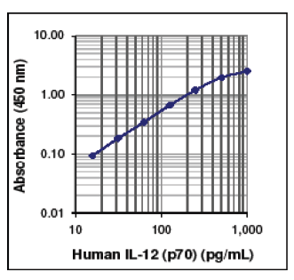 BioLegend’s ELISA MAX™ Standard Sets contain the capture and detection antibodies, recombinant protein standard, and Avidin-HRP required for the accurate quantification of natural and recombinant human IL-12 (p70).These sets are cost-effective and designed for experienced ELISA users. Optimization of reagent concentrations and assay conditions may be required.