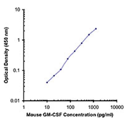 Each lot of this antibody is quality control tested by ELISA assay. For use as an ELISA detection antibody, a concentration range of 0.5-2 μg/ml is recommended. To obtain a linear standard curve, serial dilutions of GM-CSF recombinant protein ranging from 2000 to 15 pg/ml are recommended for each ELISA plate. It is recommended that the reagent be titrated for optimal performance for each application.