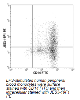 Each lot of this antibody is quality control tested by intracellular immunofluorescent staining with flow cytometric analysis. Test size products are transitioning from 20 μl to 5 μl per test. Please check your vial or your CoA to find the suggested use of this reagent per million cells in 100 μl staining volume or per 100 μl of whole blood. It is recommended that the reagent be titrated for optimal performance for each application.