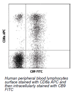 Each lot of this antibody is quality control tested by intracellular immunofluorescent staining with flow cytometric analysis. Test size products are transitioning from 20 μl to 5 μl per test. Please check your vial or your CoA to find the suggested use of this reagent per million cells in 100 μl staining volume or per 100 μl of whole blood. It is recommended that the reagent be titrated for optimal performance for each application.