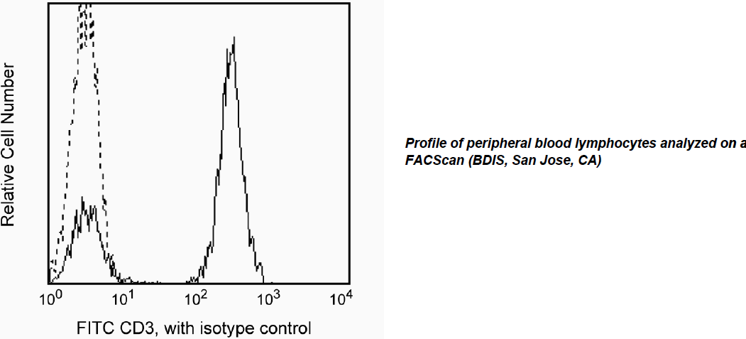 该抗体与人 CD3 ε链反应。此ε链是表达于70%-80%的正常人外周血淋巴细胞和60%-85%的胸腺细胞的CD3/ T细胞抗原受体复合物的20-kDa的亚基。研究表明,这种抗体与美洲商陆有丝分裂原偶联使用时,具有促有丝分裂的作用。CD3子抗原识别过程中起到信号转导作用。UCHT1抗体可染色细胞内CD3。另一个克隆HIT3a,仅可染色细胞外CD3。