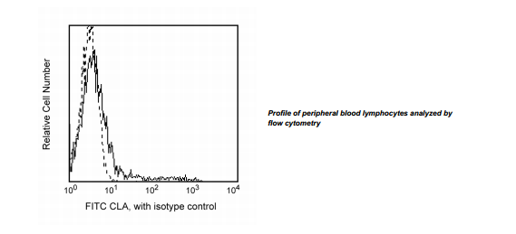 Reacts with cutaneous lymphocyte asociated antigen (CLA), acrbohydrate domain shared bysialy Lewis[x] (sLe[x]) and sialy Lewis[a]