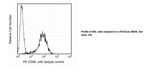 The 5E10 monoclonal antibody specifically binds to human CD90. CD90 is a 25-35 kDa molecule expressed on 1-4% of human fetal liver