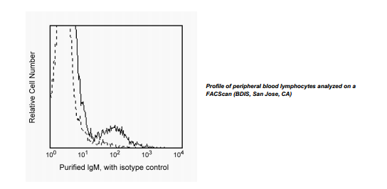 The G20-127 antibody reacts pecifaly with e havy chain ofhuman IgM. Itdoes not react with other heavy chain sotypes.