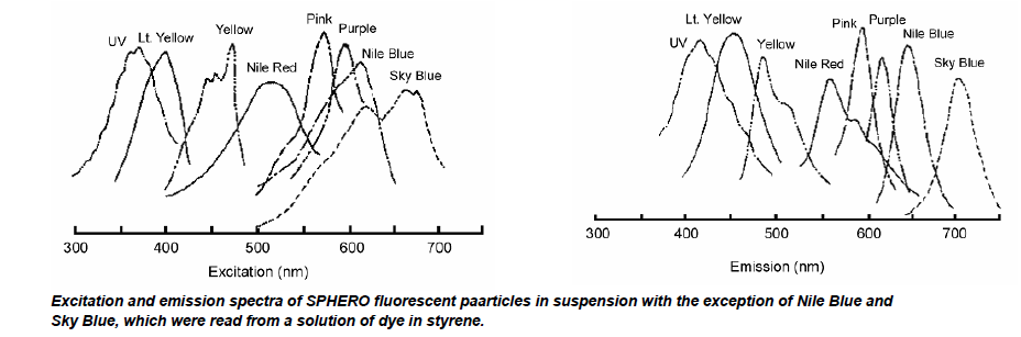 nm with a subsequent emission maximum of approximately 560 nm. This particle mixture is useful with flow cytometers equipped with a 488