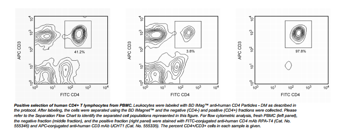 BD IMag™ anti-human CD4 Particles -DM are magnetic naoparticles tha have monclonal ntibody conjugated toheir surfaces. Thes